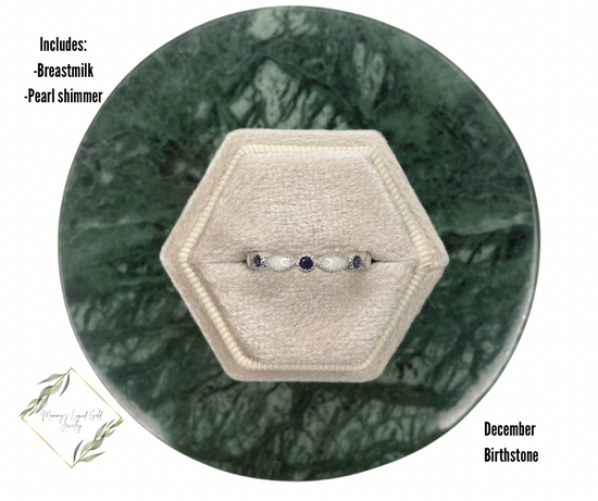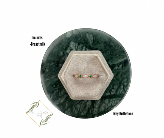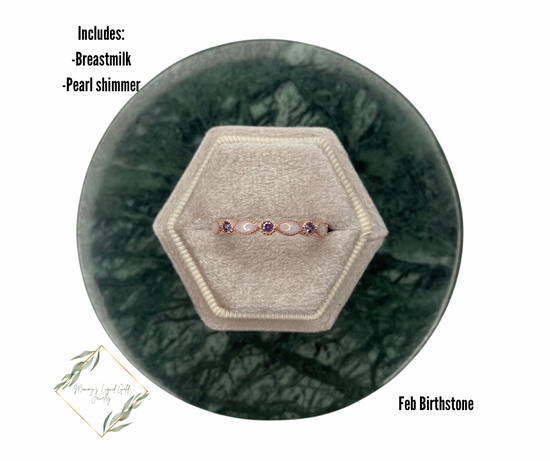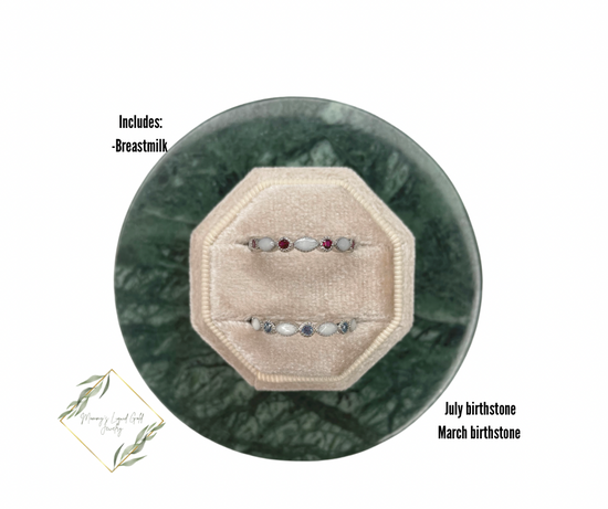 Band with inclusions and your babes birthstone! Available in yellow gold, silver, or rose gold! Can hold one birthstone. 9 different milk stone spots!