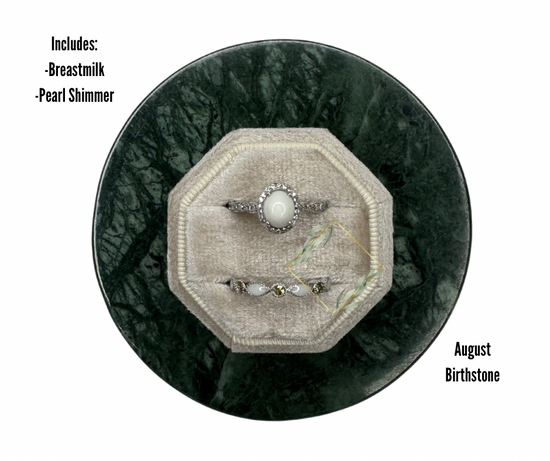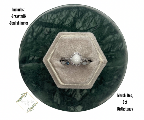 Gorgeous oval ring with a band to hold all of your babes birthstones! Band can hold up to 8 different birthstones