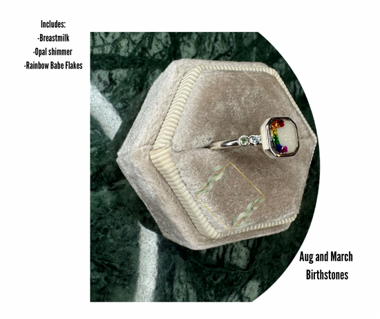 Gorgeous square bezel ring! Sides can hold up to four birthstones if your choice. These will be real gemstones or lab created depending on the stone.