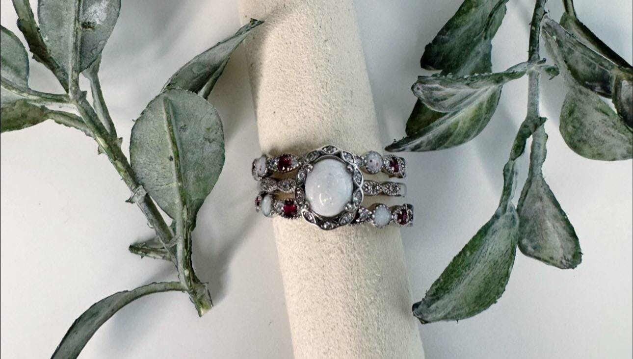 Gorgeous Victorian like oval ring with two birthstone bands! They come as a set!