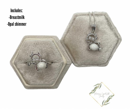Cow ring and necklace bundle! Perfect to honor your breastfeeding journey! Ring is adjustable so no size is needed!