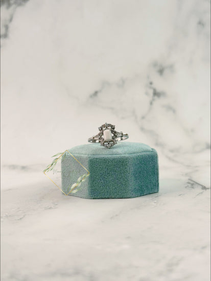 Gorgeous emerald shaped keepsake ring with elegant design around it to complement your keepsake stone. Reach into your Victorian era with this gorgeous ring