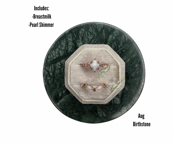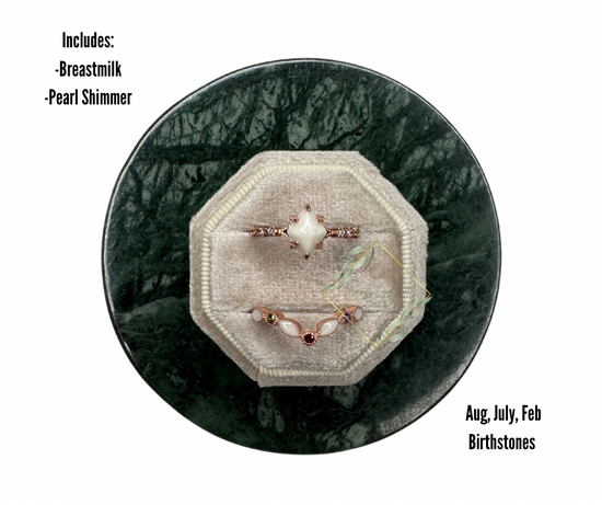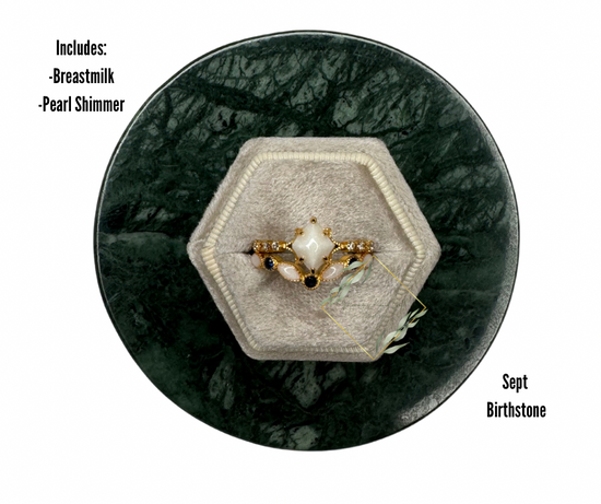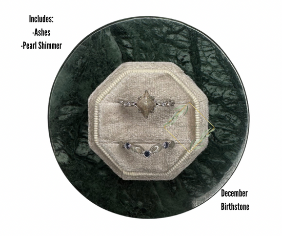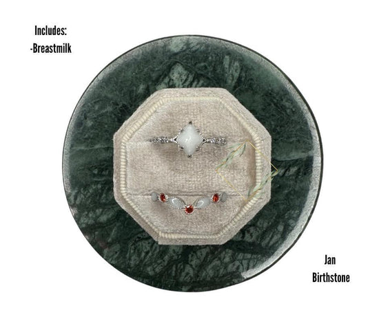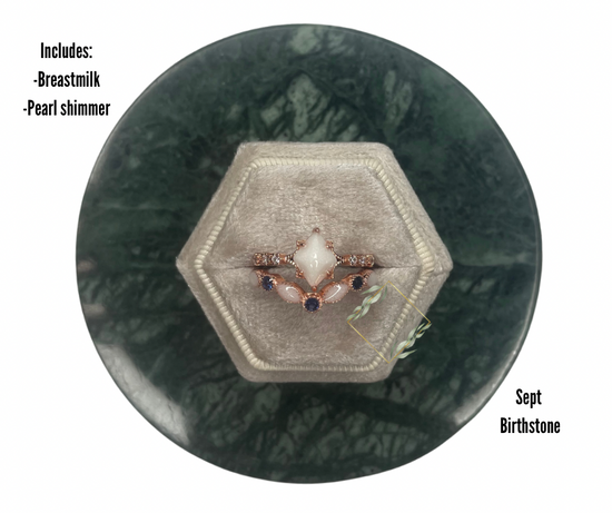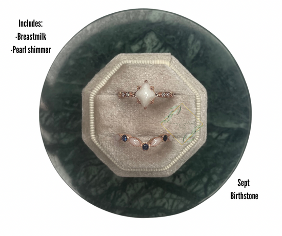 Gorgeous diamond shaped ring with curved accent band! Band can hold one birthstone. Comes as a set! Do to the shape of the stone hair is not an option for an inclusion! only stackable with this exact band