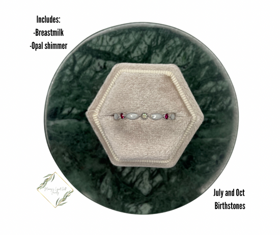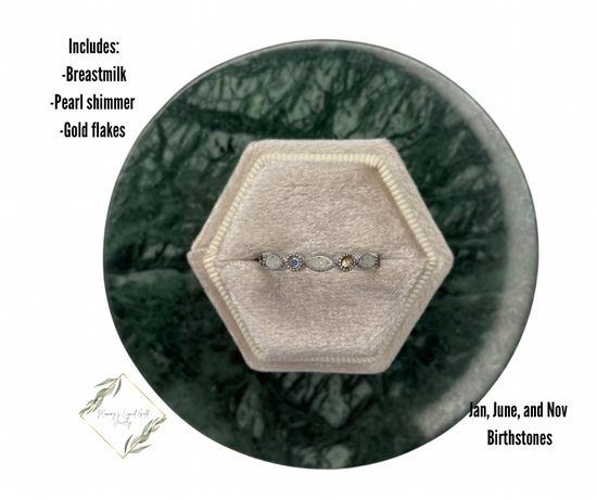 Add all your babes birthstones in this ring! You can do up to 8 different stones for size 6-12. Size 4-5 only have 7 stones. If an odd number the first stones will just repeat themselves!