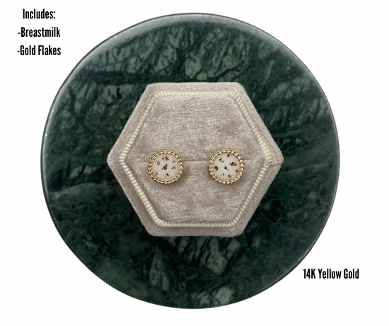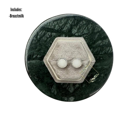 Beautiful 7mm round studs with leaf accent around them! Comes with backs for the earrings in corresponding metal chose.