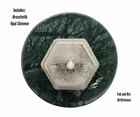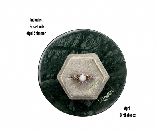 Gorgeous teardrop ring with birthstones accenting the inclusion stone! Can hold up to 3 birthstones around the rounded part of the teardrop stone. Refer to last photo for birthstone reference