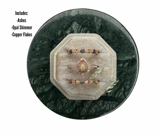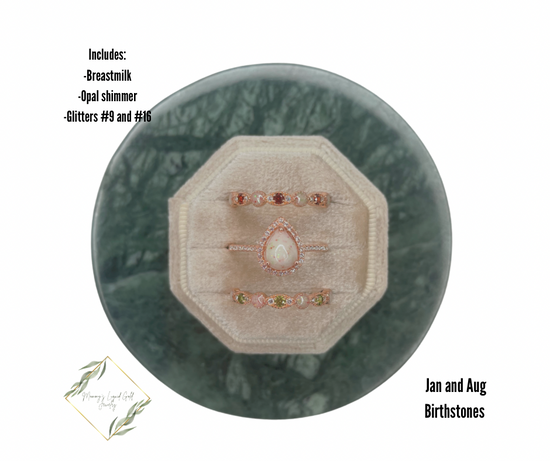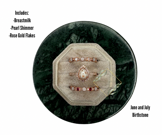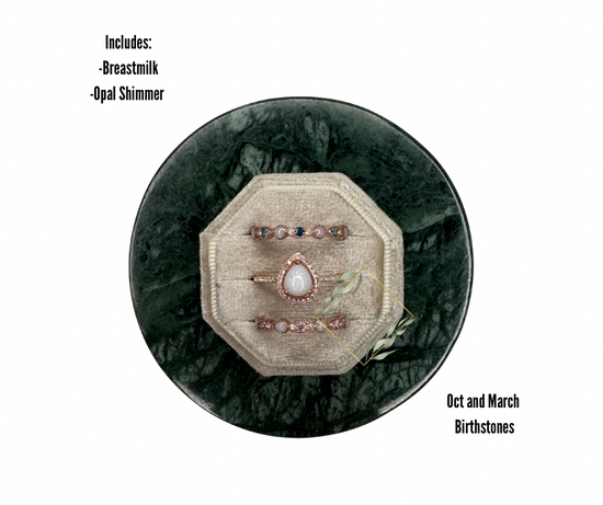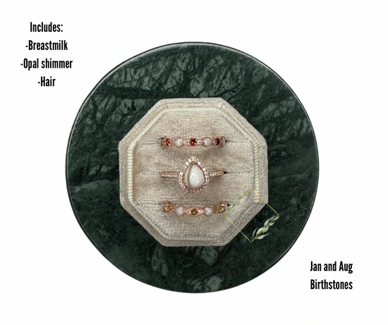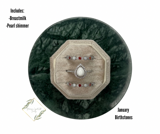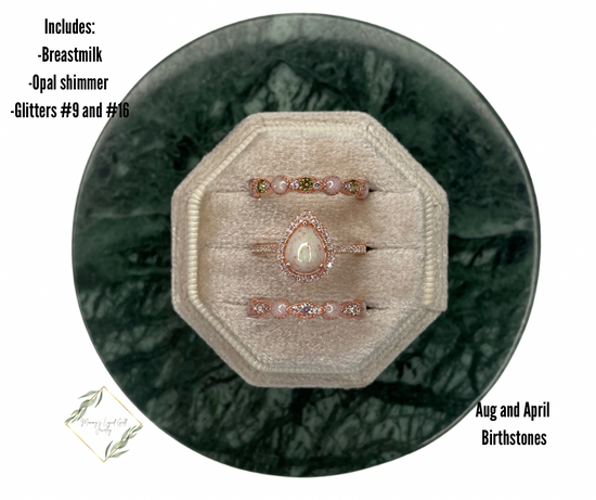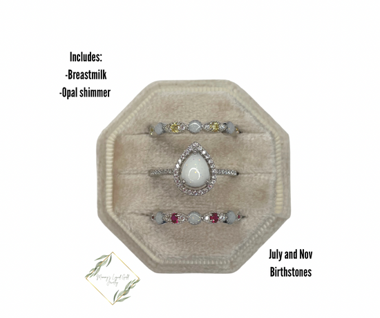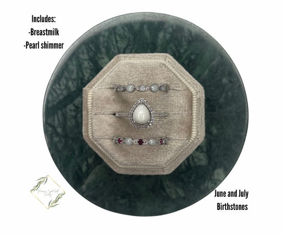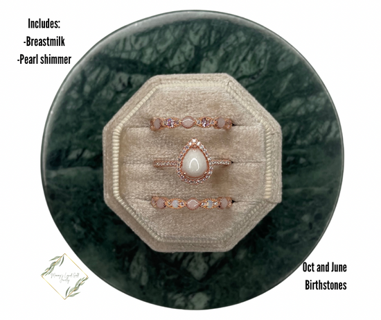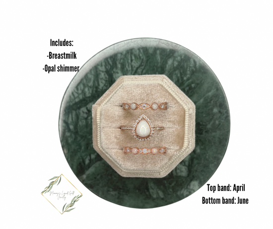 Gorgeous teardrop set with two birthstone bands! Set includes main ring and the two bands. Ring can only accommodate 1 birthstone per band of your choosing