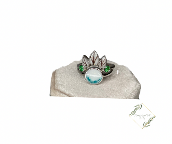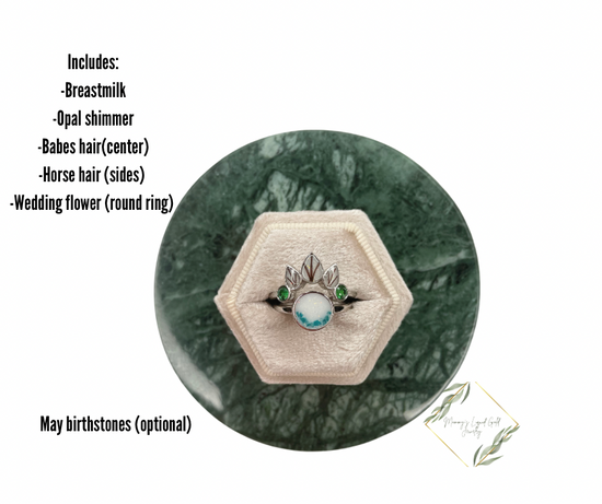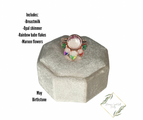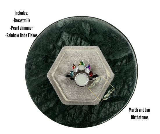 Beautiful round ring with the crown ring accent. Birthstones can be added or left milk stones! Up to two different birthstones!