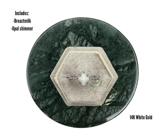 Gorgeous vintage rhombus shaped ring! Only stackable with custom curved ring! Hair is not available to be included in this ring due to the shape and curve of the stone.